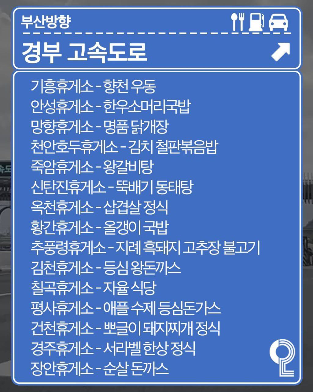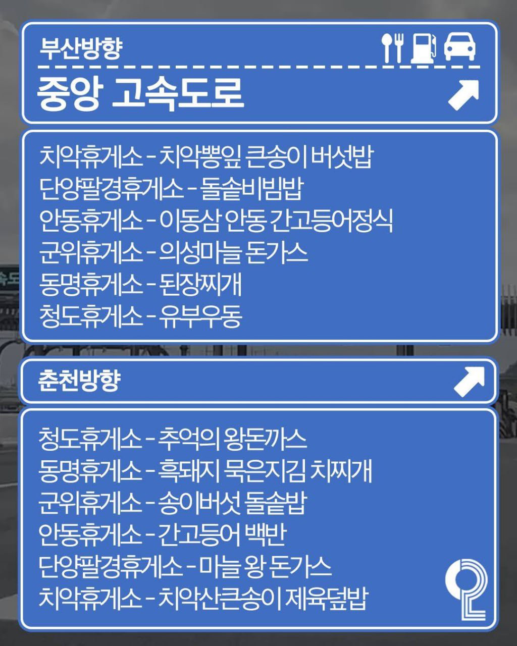 경부고속도로 휴게소 맛집 지도 정리