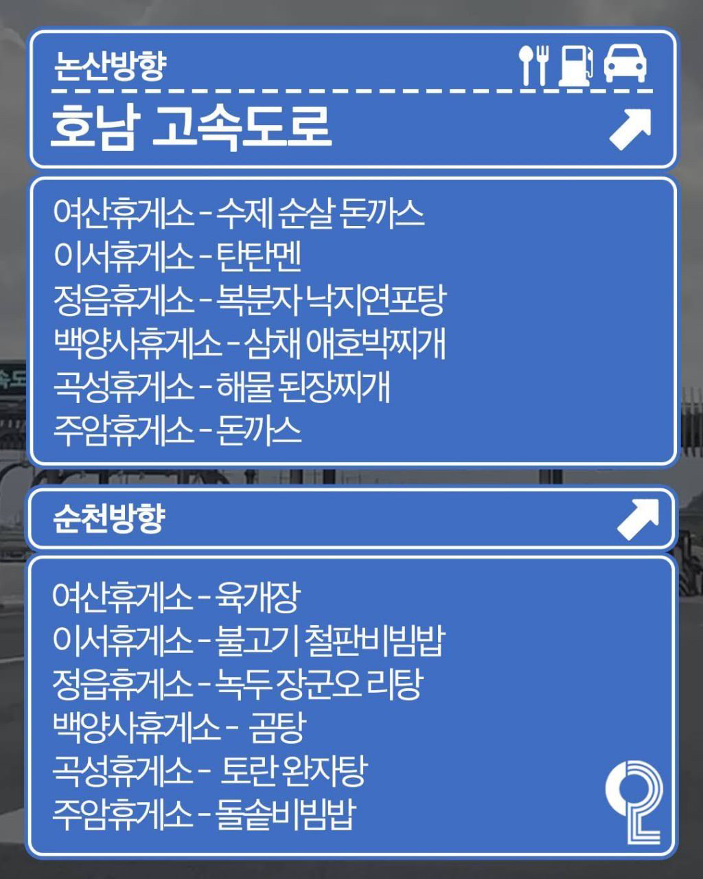 호남고속도로 휴게소 맛집 지도 정리